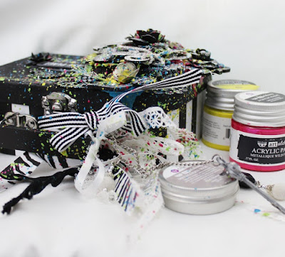 Products Used: Prima Finnabair Art Alchemy Opal Magic Paint & Opal Magic Wax. Prima Heavy Black Gesso. Prima Flowers, Art Stones, Finnabair Trinkets and bits and bobbles from my desk.