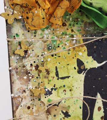 Other Products Used: 7 Dot Studio Pattern Paper & Stickers, Prima Trim & Metal trinkets, Melissa Frances Wood Veneer, Umwow Chipboard, Twinkling H2O's, Lindy Stamp Gang Mist & Embossing Powder, Golden Fluid Paint, Twine.