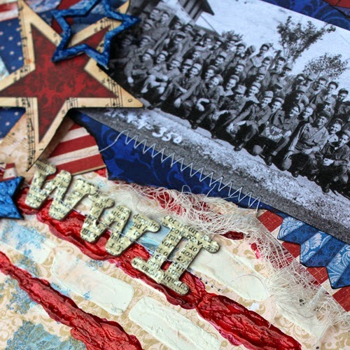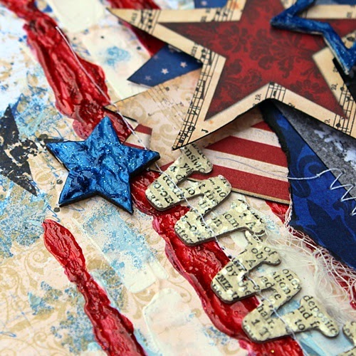 Products UsedArt Anthology -Gesso, Dimensional Crystal, Sorbet, Velvet & Colorations Mist. Bo Bunny- Anthem Collection Pattern Paper, American Crafts- Thickers, Umwow -Chipboard and a bit of cheesecloth.