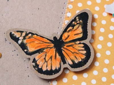 KIT Products Used: Add On Kit- Simple Stories -A Charmed Life Pattern Paper & Die Cuts, Maya Road Butterflies, Studio Calico Enamel Dots. Additional Products Used: Kraft Paper, Gesso, Smooch, Acrylic Liquid Ink.