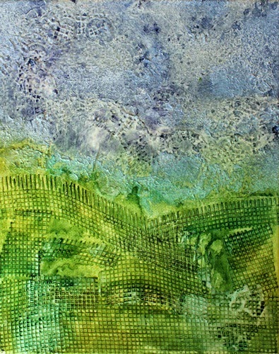 While my roses dried I went to work on my canvas adding doilies, mesh and heavy gesso for lots of yummy texture! Then I used so more Art Anthology Colorations Spray to create my landscape. This is what it looked like when I went to bed.