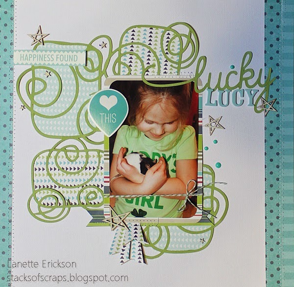 So I needed to use this fun little collection for something other than a vacation. Which seems strange I know, but really I have a lot of collections that I would never use if I only focused on the theme of the collection. So I gave it a go with a LO about our new pet, Lucy!