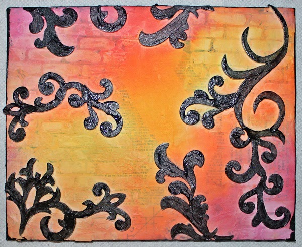 Art Anthology Products Used: Gesso, Sorbet -Black Leather Jacket, Colorations Spray Glorious, Juicy & Hottie.