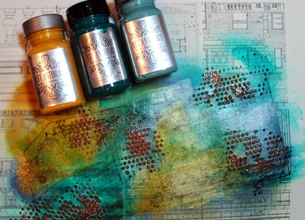 Next I added a bit of shine and texture using my Copper Metal Effects & a new AA stencil.