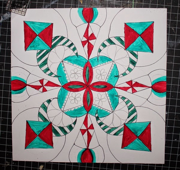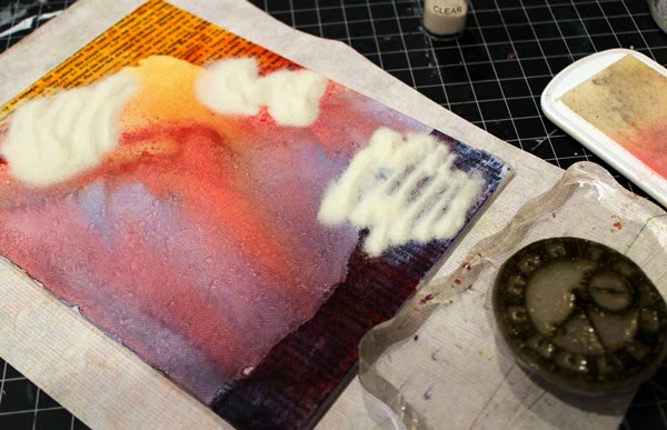 As you can see I built the picture up by using a piece of cardboard that I painted white using a bit of Art Anthology Gesso.