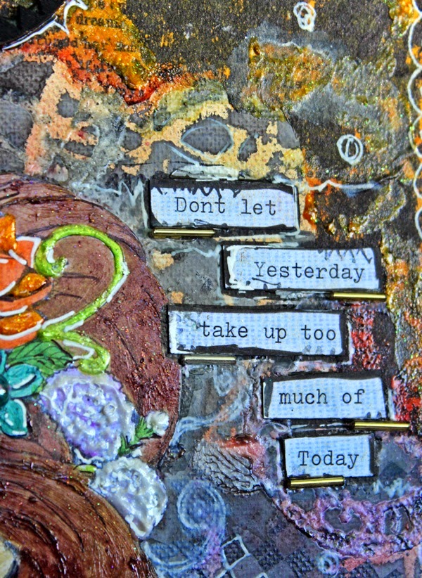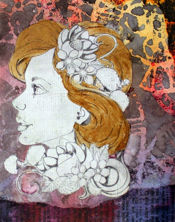After painting my stamped image I added lots of dimension & texture to my canvas using Art Anthology Dimensional Crystals, a few odds and ends and few doodles!